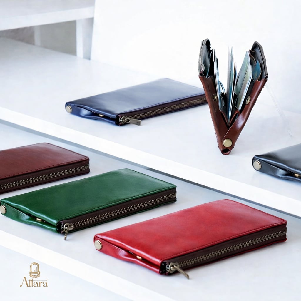 コンパクトなサイズと薄さを実現し、ラウンドファスナーのように大きく開きながらもマチが無いため厚みを抑え、中身もしっかり保護します。